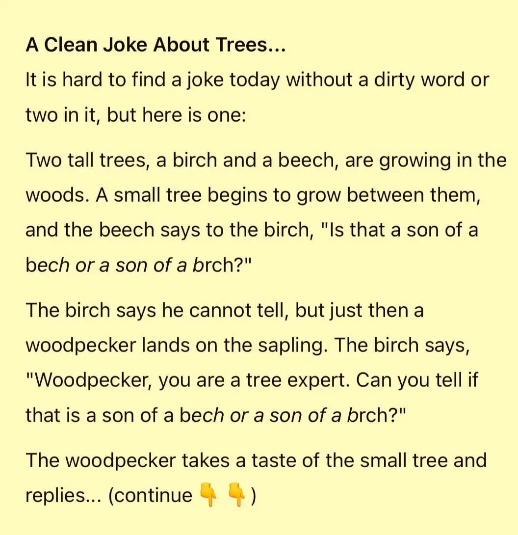 It is hard to find a joke today without a dirty word or two in it, but Here is one: