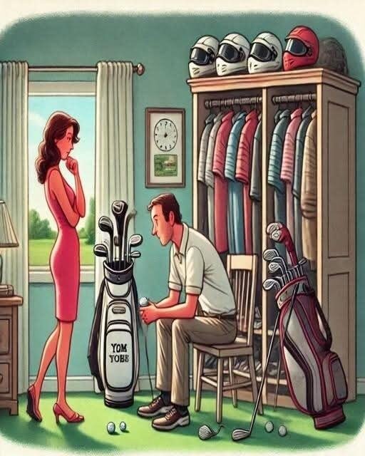 Tim decided to marry his long-time girlfriend. One evening, not long after their honeymoon, he was busy organizing his golf equipment