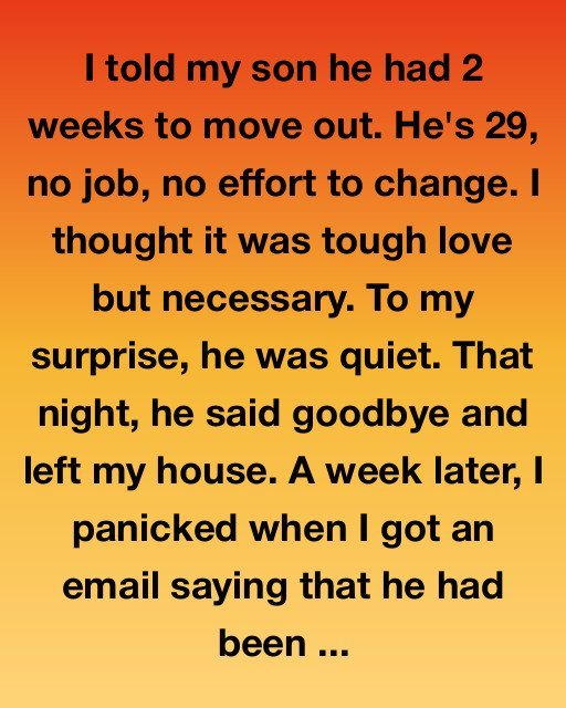 I told my son he had 2 weeks to move out. He’s 29, no job, no effort to change. I thought it was tough love but necessary.