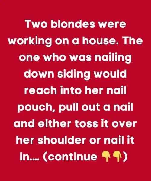 The second blonde got completely upset and yelled, “You moron! The nails pointed toward you aren’t defective!