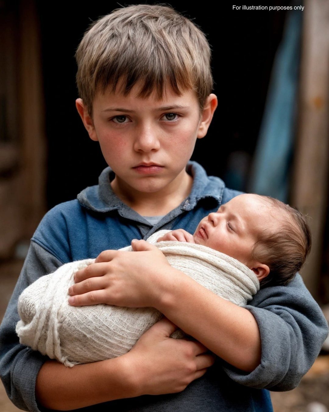 In front of him stood a child about seven years old. Thin, disheveled, with tearful eyes. In his arms he held a tiny bundle, from which peeked the face of a little baby.
