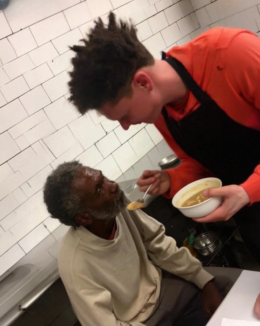 I stood there for a second, torn between fear of what would happen if someone saw me, and the overwhelming instinct not to let this man freeze to death outside a kitchen full of leftover soup.
