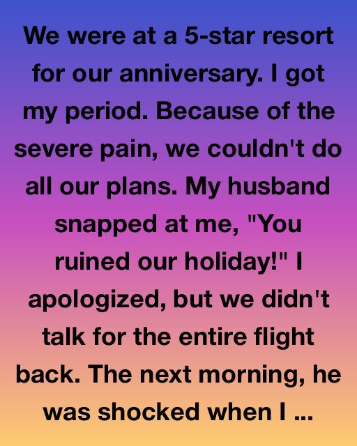My husband snapped at me, “You ruined our holiday!” I apologized, but we didn’t talk for the entire flight back. The next morning, he was shocked when I packed a small suitcase and told him I was leaving. I didn’t yell.