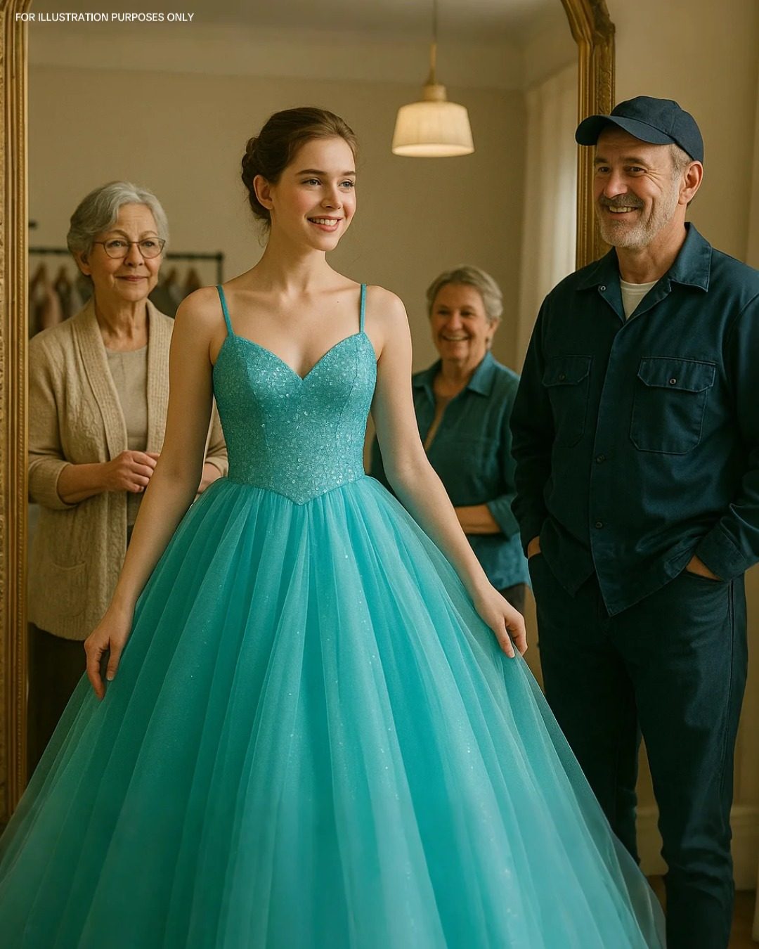 They sent her to a local dress boutique owned by Mrs. Albright, a retired tailor whose own daughter had once been in Grace’s shoes. When Grace stepped out of the dressing room in an emerald green gown with lace sleeves and a soft flowing skirt, the entire shop fell silent.