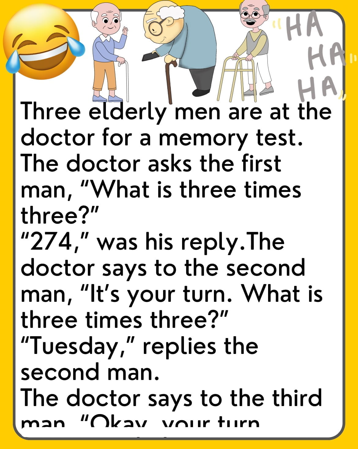 “274,” was his reply.The doctor says to the second man, “It’s your turn. What is three times three?”