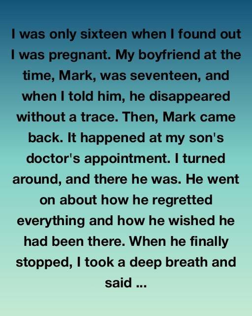 I was only sixteen when I found out I was pregnant. My boyfriend at the time, Mark, was seventeen, and when I told him, he disappeared without a trace. Then, Mark came back. It happened at my son’s doctor’s appointment. I turned around, and there he was. He went on about how he regretted everything and how he wished he had been there. When he finally stopped, I took a deep breath and said, “You don’t get to walk back into our lives just because you suddenly feel guilty.”