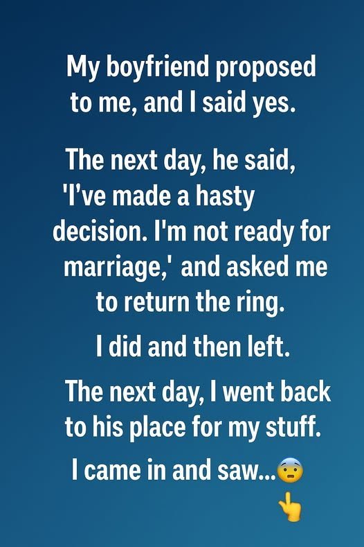 My boyfriend proposed to me, and I said yes. The next day, he said, “I’ve made a hasty decision. I’m not ready for marriage,” and asked me to return the ring.