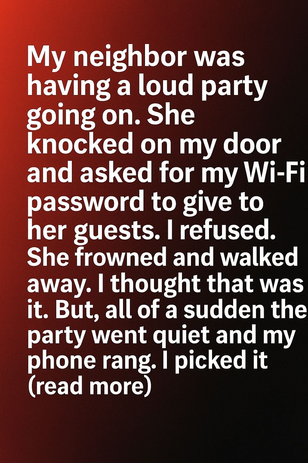 It was my neighbor. She smiled awkwardly and asked if she could have my Wi-Fi password to give to her guests because theirs wasn’t working. I was a bit surprised and politely said no, explaining that I prefer to keep my network private.